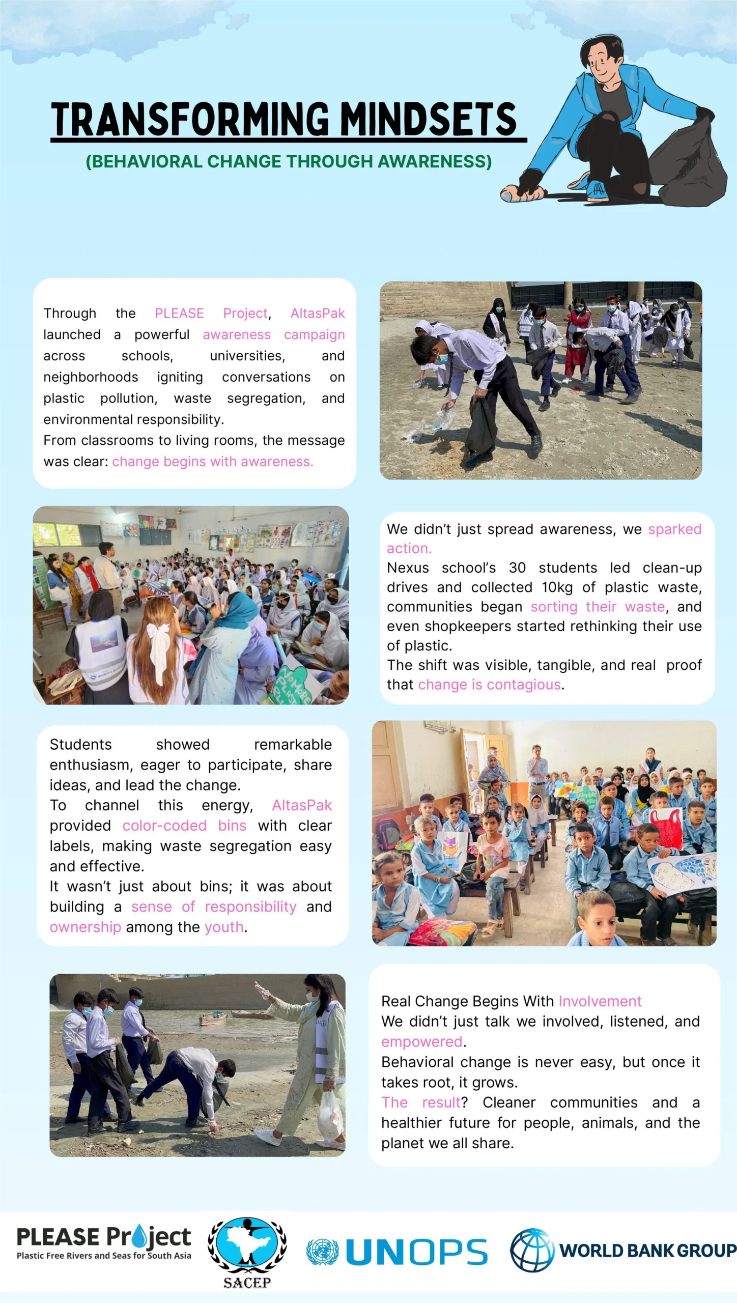 Broadening Reach through our upcoming BCC (Behavior Change Communication) campaigns will further spread awareness about plastic pollution and promote sustainable practices targeting schools, universities, hospitals, and industries.